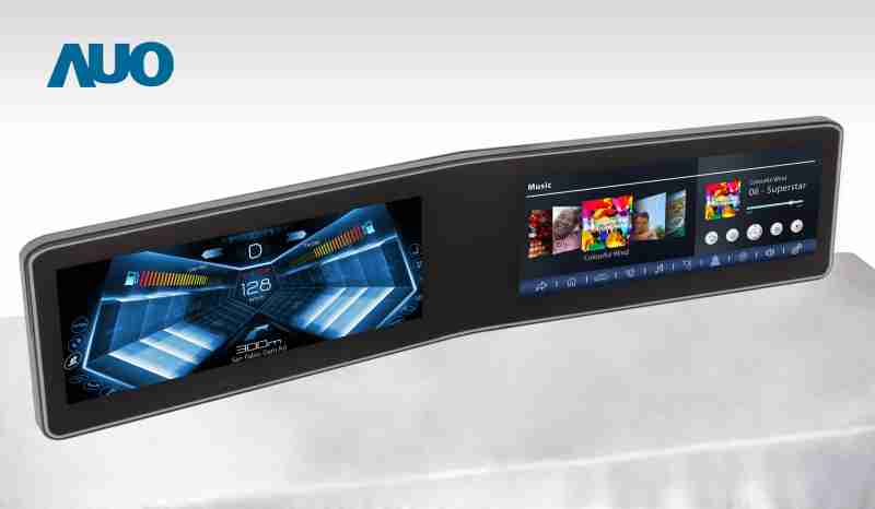 彩霸王 V 型曲面驾驶舱显示器,,采全贴合拼接仪表板及中控台显示屏 |