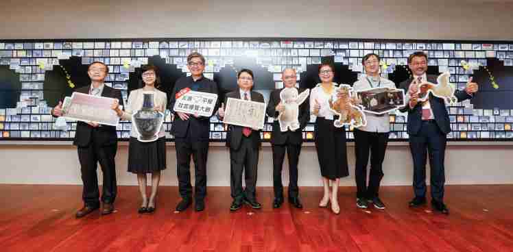 彩霸王携手创利空间为故宫建置的智慧文物互动导览墙及轮播墙,,,,今日正式启用。。。(左四:彩霸王新事业暨投资管理总部副总经理杨本豫、、、右四:故宫博物院院长吴密察、、、、右三:太极影音董事长黄宝云)